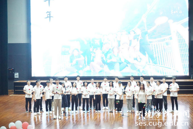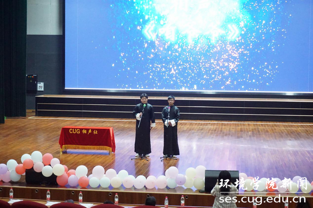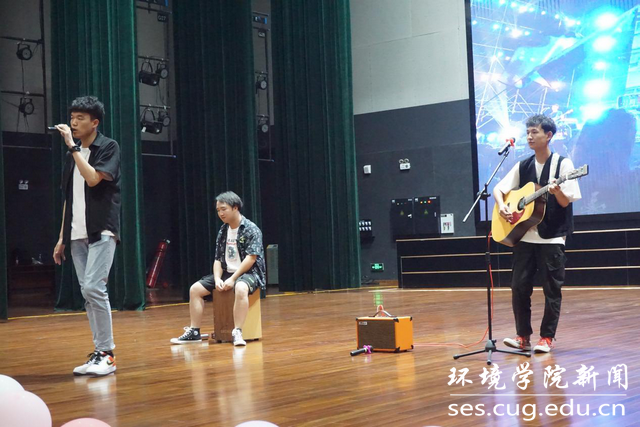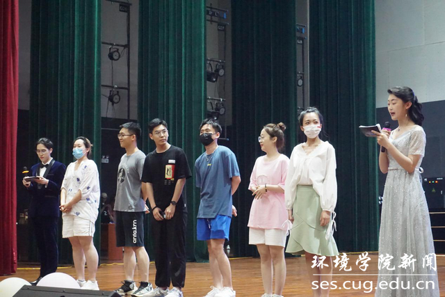 晚会进入第二阶段,李星谕同学深情演唱《岁月神偷》,感叹时光流逝,又幸得有你,带同学们回忆起大学生活的点滴美好。话剧《微微山峦,星河璀璨》以地大壁画为背景,描述了两位地大学子的从相知相识相恋,到献身地质事业的感人故事。