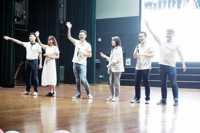 之后,学工组的老师们带来歌曲《同桌的你》,传达了老师们对同学们的不舍以及对同学们的殷切期望,同学们的闪光灯也回应着老师们的真挚情感。毕业工作委员会的同学们也带来《光阴的故事》,带动全场观众一起大合唱。