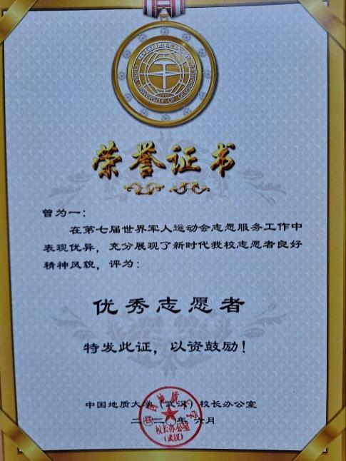 曾为一参加第七届世界军人运动会志愿服务