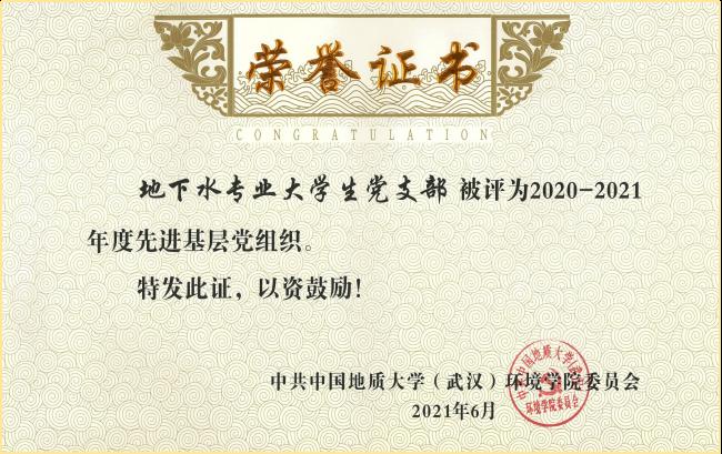 地下水专业大学生党支部被评为365体育投注 2020-2021年度先进基层党组织