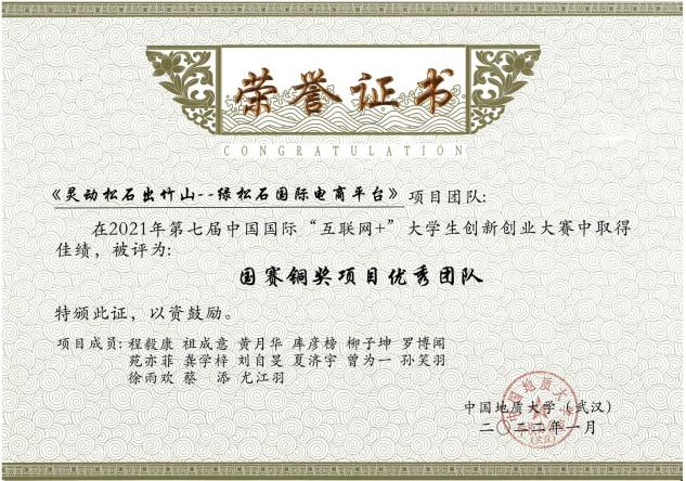 2021年第七届中国国际“互联网+”大学生创新创业大赛国际赛道国家级铜奖