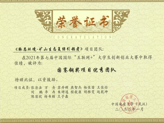 2021年第七届中国国际“互联网+”大学生创新创业大赛传统赛道国家级铜奖