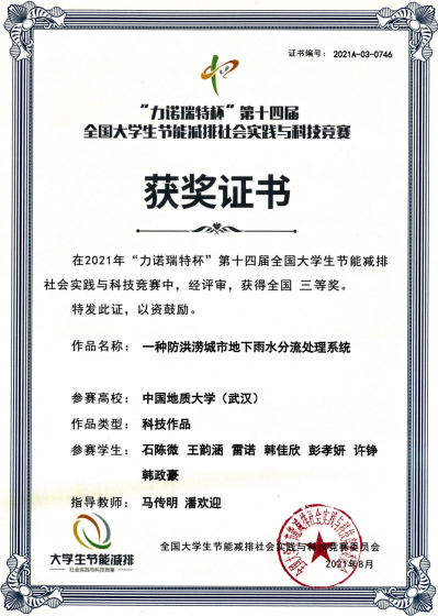 第十四届全国大学生节能减排大赛三等奖