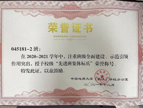 在班级同学的共同努力下,班级多次获得校级集体荣誉,2019年获得校级先进班集体、校级主题团日设计大赛一等奖,2020年、2021年连续两年分别获得校级“百生讲坛”活力团支部二等奖、校级五四红旗团支部、校级先进班集体标兵等荣誉称号。耀眼的成绩背后,是所有班级成员和中加人的奉献与传承,也是他们情谊的见证与褒奖。
