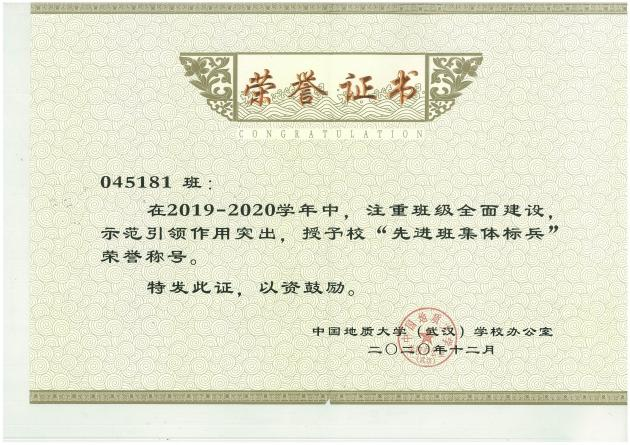 2020年校级先进班集体标兵