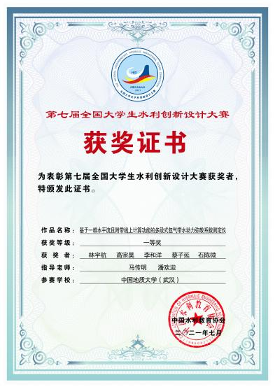 第七届全国大学生水利创新设计大赛一等奖